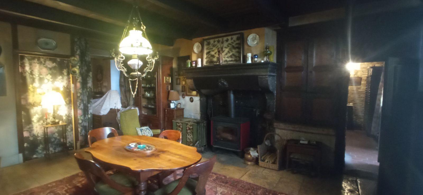 Authentique maison de village à rénover comprenant de nombreux éléments patrimoniaux tels que cheminées, dalles en pierre, tomettes, poutres, pierre d'évier, cave voutée. Au rdc: salle à manger-salon (aménageable en chambre), cuisine, salle d'eau, wc et une pièce atelier-remise; à l'étage un vaste grenier aménageable. Grange et écurie attenantes. Cour devant et petit terrain à l'arrière avec vue dégagée.